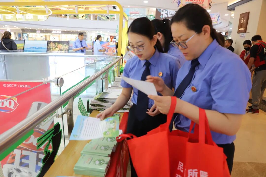 活动现场,包头铁检院法治宣讲小组人员采取现场发放普法宣传手册、宣传单,通过讲解典型案例对相关生态环境保护法律法规条文进行解析,与其他宣传单位就生物多样性知识进行大众科普等多种形式,紧密结合铁检机关集中管辖改革后相应职能变化同步进行了宣介。