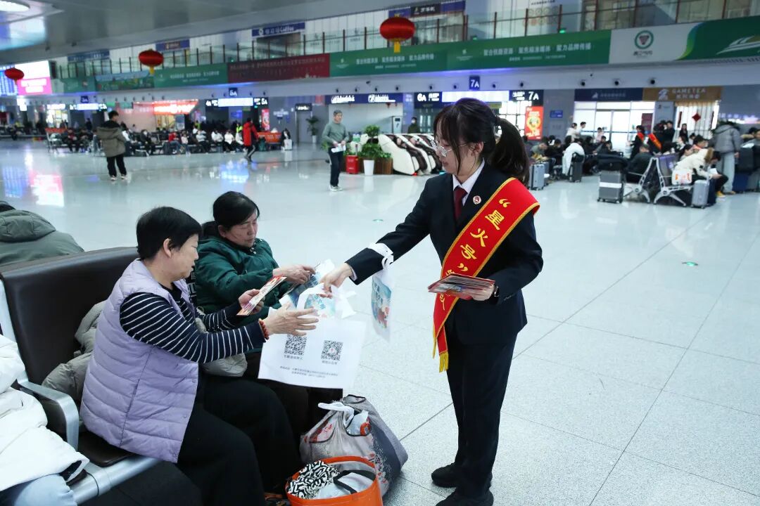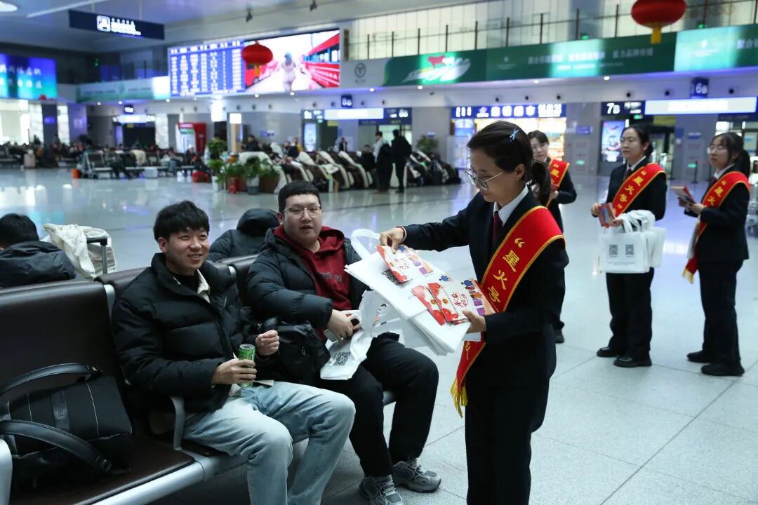 活动现场设立了主题宣传展台,摆放了法律知识展板,紧密结合春运期间易发多发的法律风险,用通俗易懂的语言列举电信诈骗、盗骗旅客财物、扰乱站车秩序、网络赌博等常见刑事案件,提示防范要点,解读法律条文,向出行旅客及铁路职工发放宣传册300余份,引导广大群众知法、守法、用法。同时,积极践行“枫桥经验”,为旅客、铁路职工提供“一对一”法律咨询服务,帮助大家厘清法律关系,推动矛盾纠纷化解。