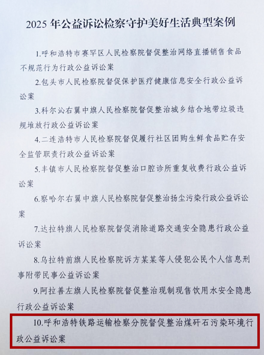 喜报!呼铁检察机关一案例获评全区“2025年公益诉讼守护美好生活典型案例”