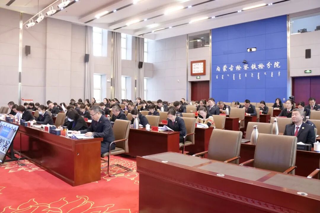 近日,呼铁检察分院组织召开主题为“高质效检察理论研究促进高质效检察履职”的全区铁检机关首届检察理论研究年会。分院在家班子成员,各基层院分管法律政策研究工作的领导、部门负责人,两级院调研人才库成员、获奖代表及分院全体人员在主会场参会。本次年会特别邀请自治区院法律政策研究室主任刘海生,内蒙古大学法学院党委书记龙长海、院长丁鹏,包头市人民检察院党组成员、检委会专职委员呼德到会指导。
