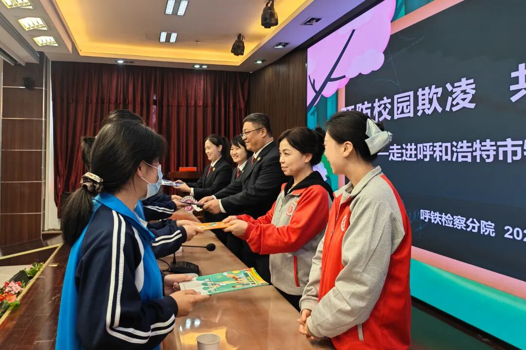 为加强特殊未成年人群体司法保护,筑牢校园安全法治防线,3月12日,呼铁检察分院党组成员、副检察长刘杰带队走进呼和浩特市特殊教育学校,开展“预防校园欺凌,共建和谐校园”法治宣教育。